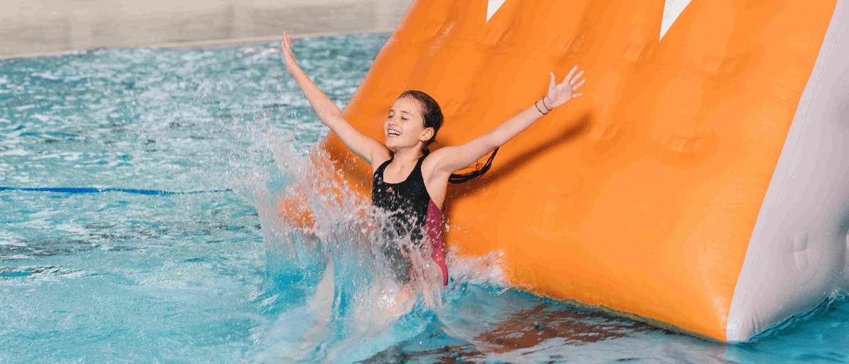Jedes Wochenende verwandelt sich unser Schwimmerbecken in ein echtes Abenteuerland! Samstags und sonntags von 14:30 bis 16:30 Uhr wird das Becken zum Spielplatz für Kinder und Jugendliche. Ob beim Balanceakt auf der Slackline, die über das Wasser gespannt ist, oder beim schnellen Lauf über schwimmende Matten: Es gibt immer Spass und Abwechslung. Ein besonderes Highlight ist der EBL-AquaTrack, ein in der Region einzigartiger, aufblasbarer Hindernis-Parcours. Er fordert Mut und Geschicklichkeit und belohnt beim erfolgreichen Passieren mit bewundernden Blicken.